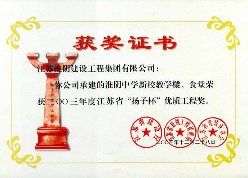 2003年市级优质工程淮中新校区食堂工程(耿玉海)