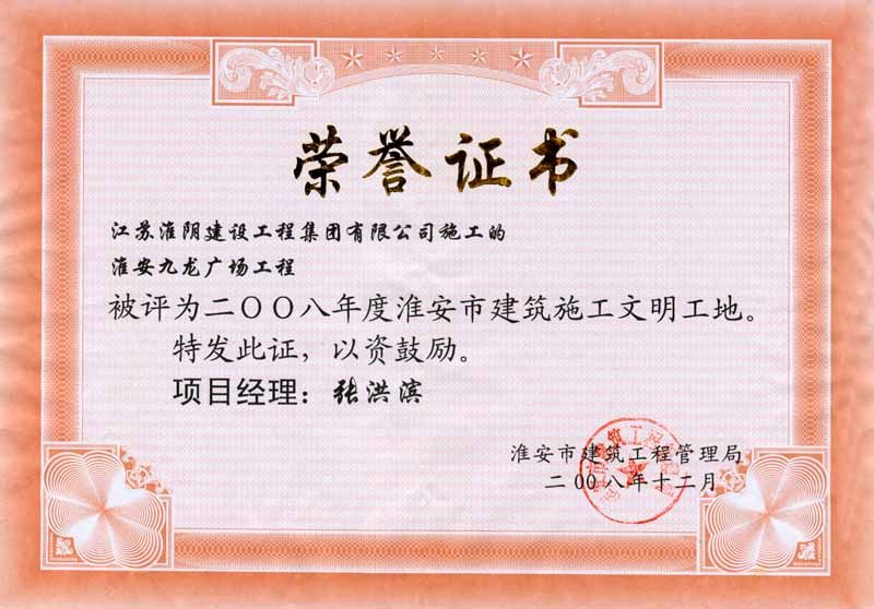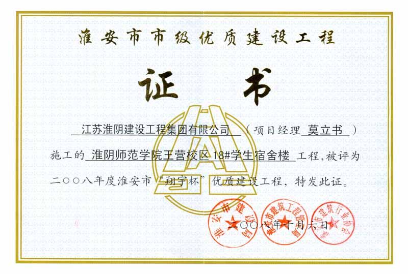 2008年市文明工地淮安市北京路中学高中教学楼-汪洪斌