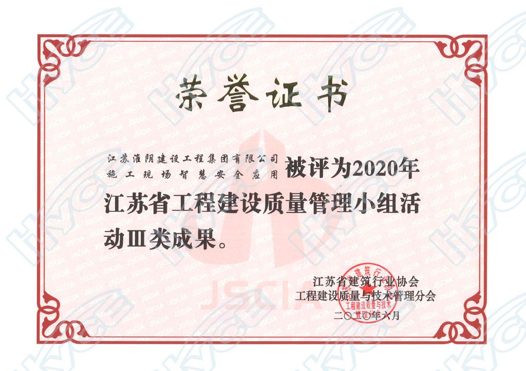 江苏省工程建设质量管理小组活动III类成果
