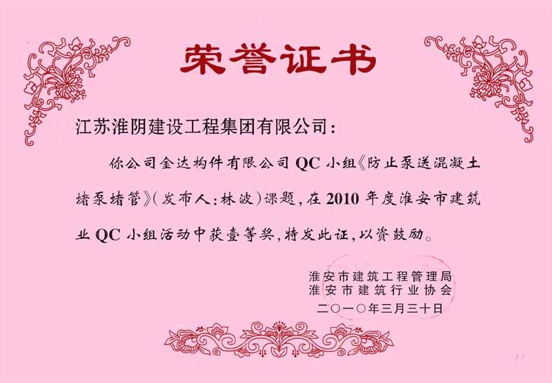 2010年市QC(一等奖)防止泵送混凝土堵泵堵管(金达构件-林波)