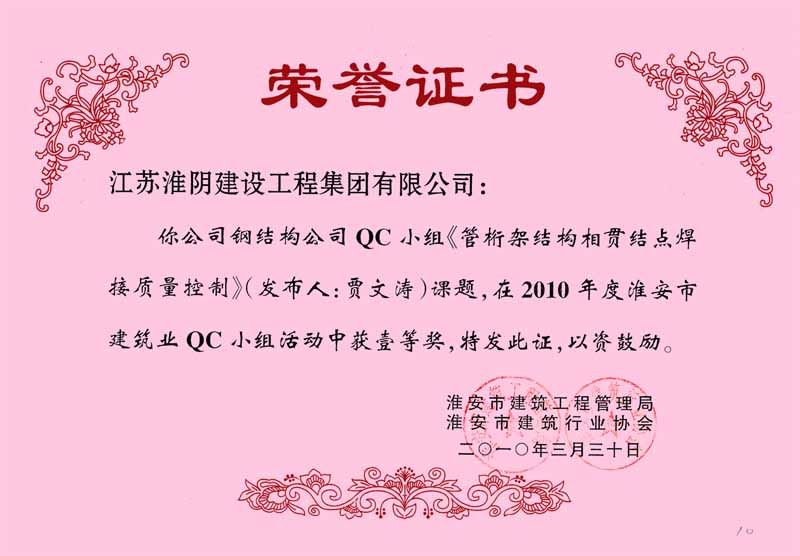 2010年市QC(一等奖)管桁架结构相贯节点焊接质量控制(钢结构-贾广涛)