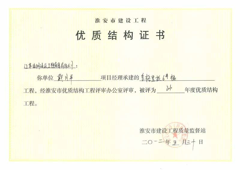 2012年市优质结构香格里拉6号楼