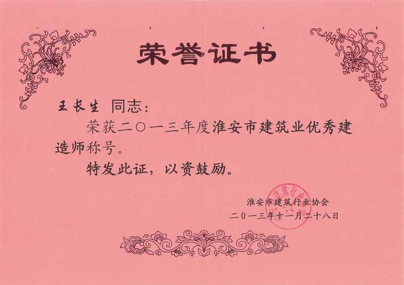 2013年度淮安市建筑业优秀建造师-王长生