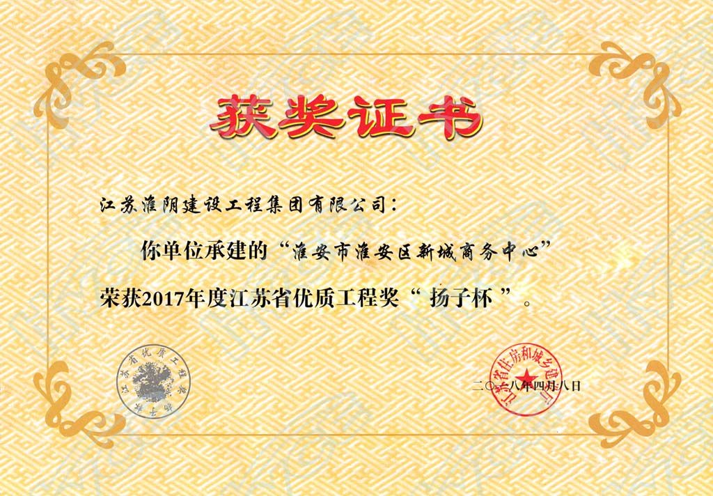 2017年度江苏省优质工程奖“扬子杯”-淮安市淮安区新城商务中心