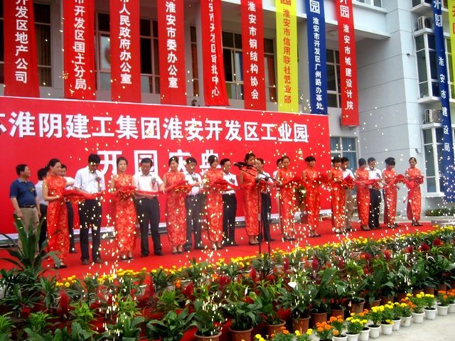 上午948分,淮建集团开发区工业园开园庆典正式开始,庆典由胡从亮总经理主持。许金华董事长首先代表集团全体员工向各位来宾致欢迎辞,并简要介绍了淮建集团50年的发展历程、近几年企业的生产经营情况以及淮建集团工业园的建设概况,他对各位领导及各位来宾对淮建集团的长期关注以及集团工业园建设的大力支持表示由衷的感谢;市经济开发区管委会周毅主任作了热情洋溢的讲话,他代表开发区管委会祝淮建集团“今日吉祥开园,明朝大富启源”,同时祝各位来宾事业兴旺、吉祥如意,祝淮建集团各位员工身体健康、合家欢乐;市政府刘晓录副秘书长到会宣布淮建集团开发区工业园隆重开园。庆典现场顿时鼓乐齐鸣、礼花飞扬,数千只五彩缤纷的气球腾空而起,十六响礼炮隆隆作响,预示着集团工业园宏图大展、实现新的跨越!